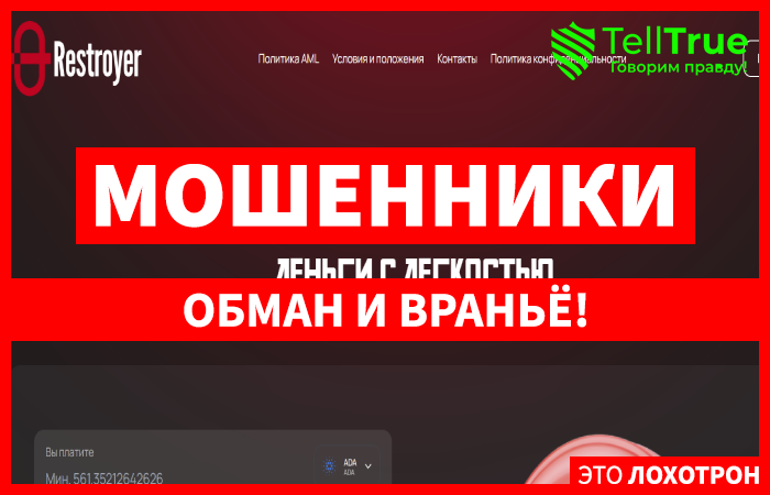 Мошеннический Обменник Restroyer (restroyer.com) Отзывы и Возврат Денег!