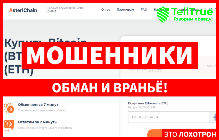 Мошеннический Обменник Asterichain (asterichain.com) Отзывы и Возврат Денег!